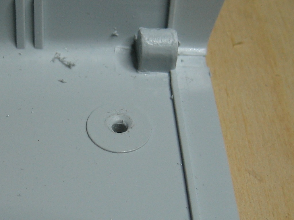 und in der Mitte der vier runden Kunststofferhöhungen bohren.