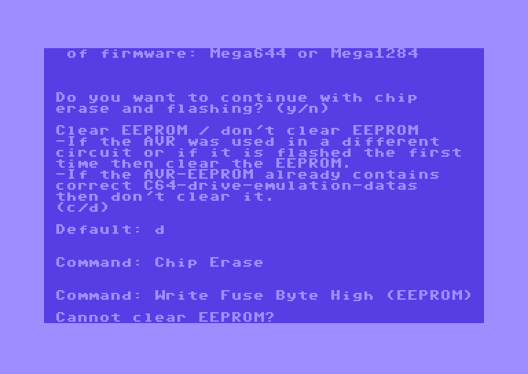 Error: The EEPROM configuration bytes cannot be cleared.